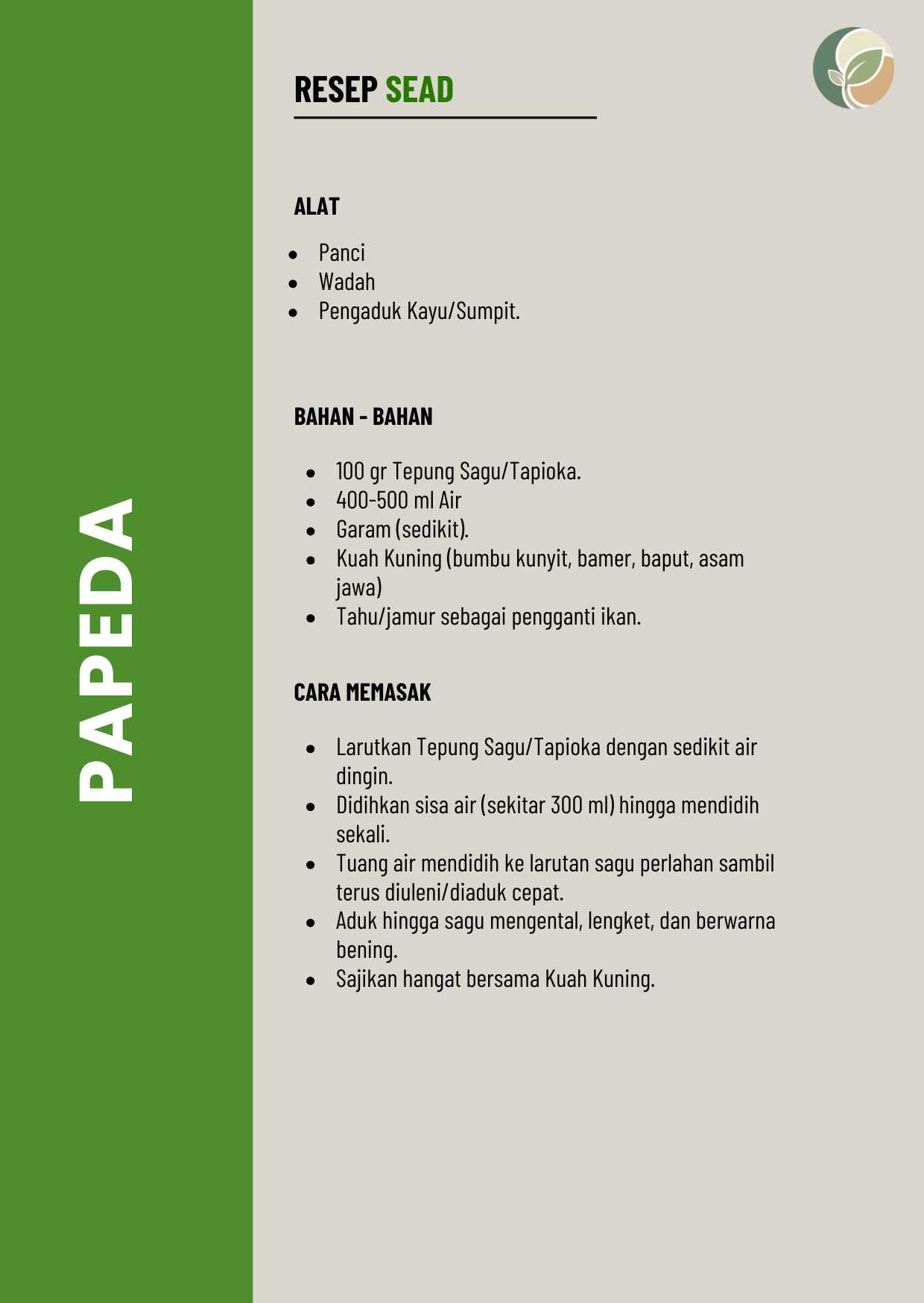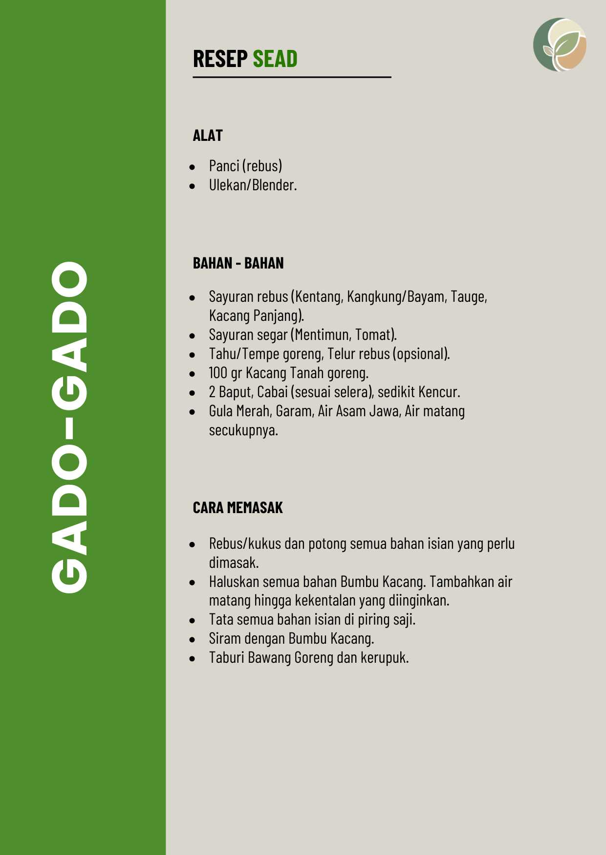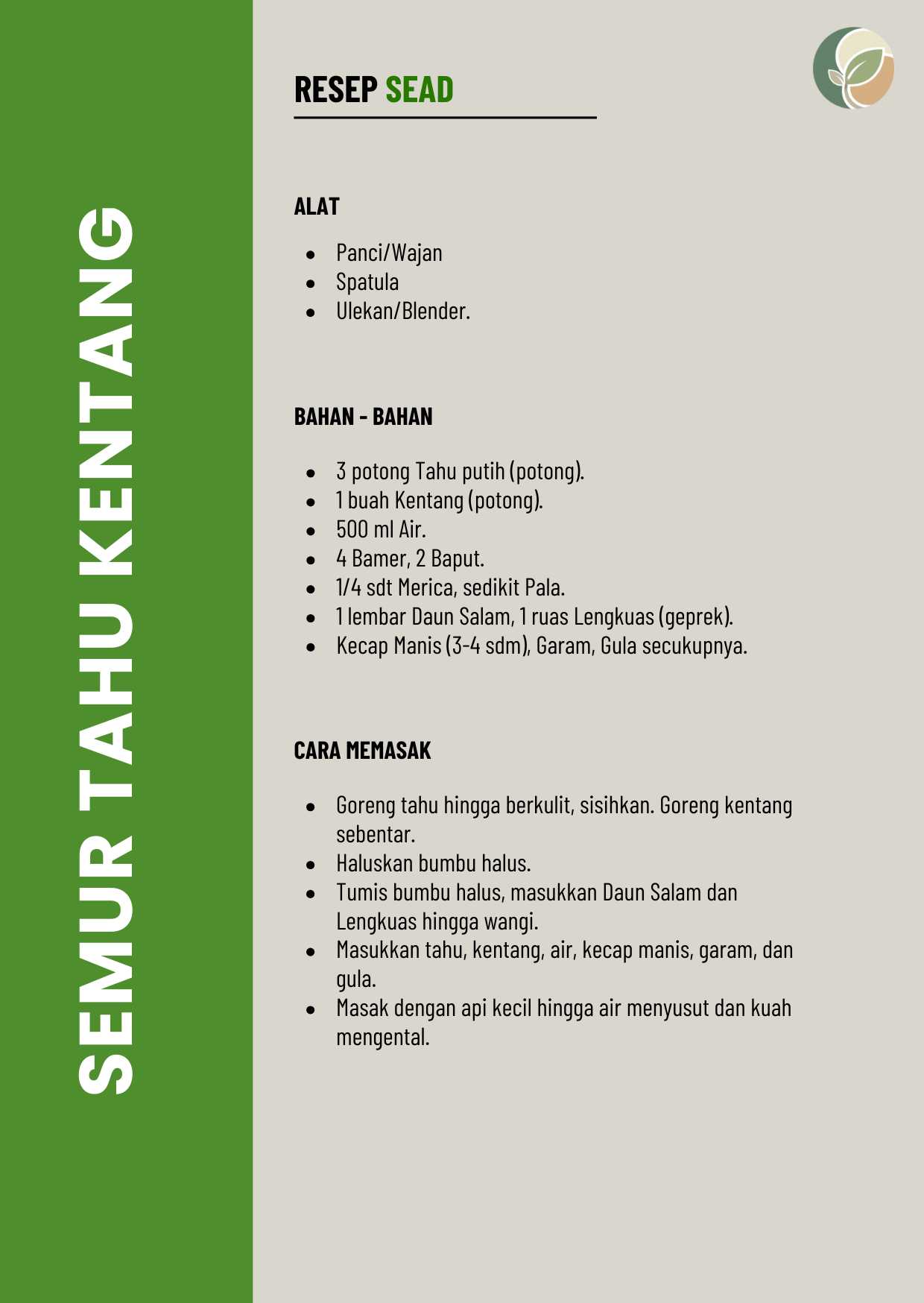 Selamat datang di Gudang Resep SEAD! Di sini, kami percaya bahwa makan enak tidak harus selalu pakai daging. Kumpulan resep ini akan membuktikan bahwa hidangan nabati bisa jadi lebih lezat, kreatif, dan pastinya ramah lingkungan. Setiap resep dirancang untuk pemula hingga ahli, dengan bahan yang mudah ditemukan dan langkah yang simpel. Siap-siap terkejut dengan rasa autentik yang tidak kalah dari versi dagingnya, sambil Anda berkontribusi pada planet yang lebih sehat. Yuk, eksplorasi menu-menu favorit baru Anda dan buat Senin Anda lebih istimewa!
